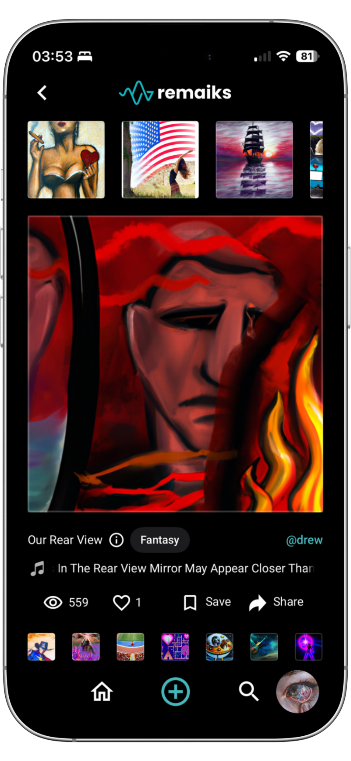 Remaiks AI doesn’t replace creativity, it reveals it. Art that speaks as memories in music - your imagination on fire.